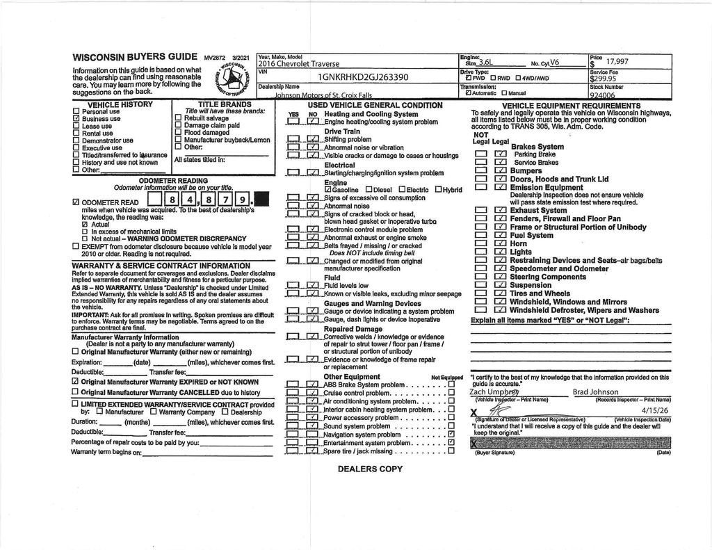 Spacious comfort, family-friendly versatility, and dependable V6 performance come together in this Certified 2016 Chevrolet Traverse 2LT FWD, finished in clean Summit White. Powered by the proven 3.6L V6 SIDI paired with a smooth 6-speed automatic transmission, this Traverse delivers confident performance, a comfortable ride, and roomy practicality for everyday life.
