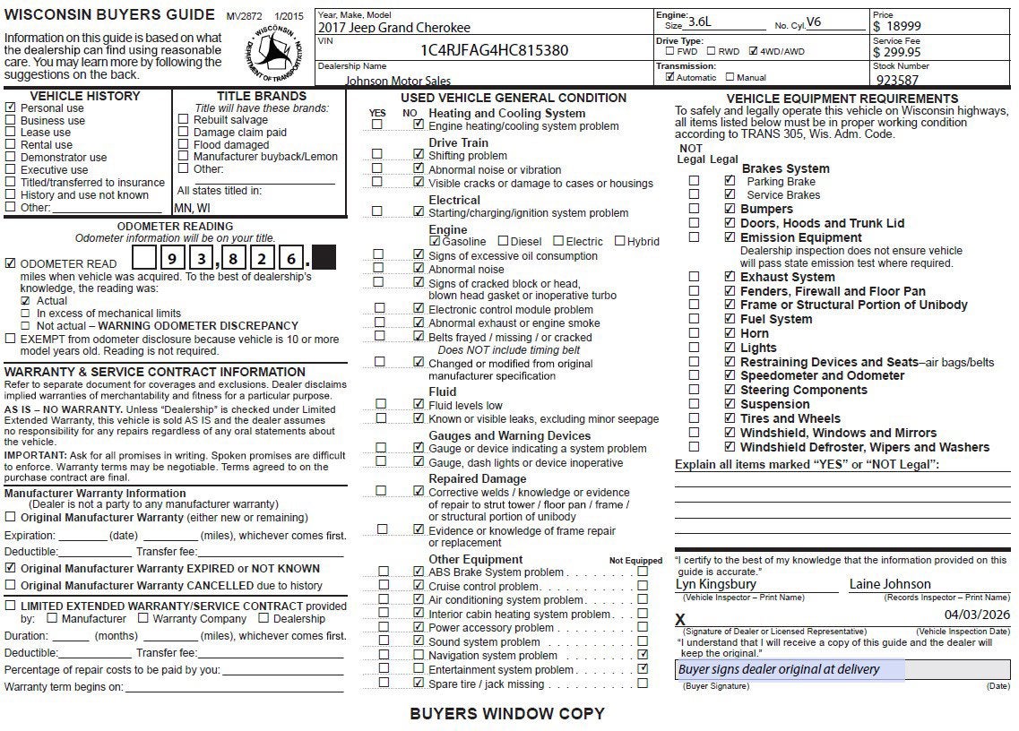For a must-own Jeep Grand Cherokee come see us at Johnson Motor Sales, 620 Deere Dr, New Richmond, WI 54017. Just minutes away!