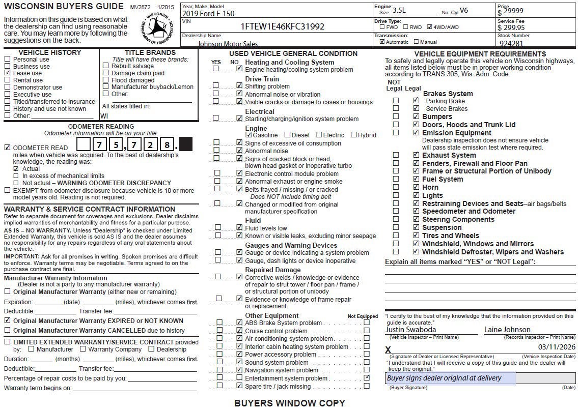 Price does not include sales tax, title, registration, or $299.95 service fee.