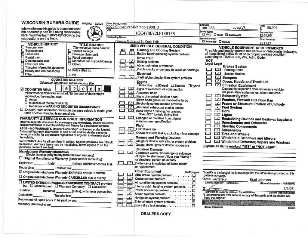 Turn heads and take on anything in this exceptionally clean 2020 Chevrolet Silverado 2500HD High Country, now available at Johnson Motors of St. Croix Falls. This is heavy-duty capability wrapped in premium High Country luxurythe best of both worlds.