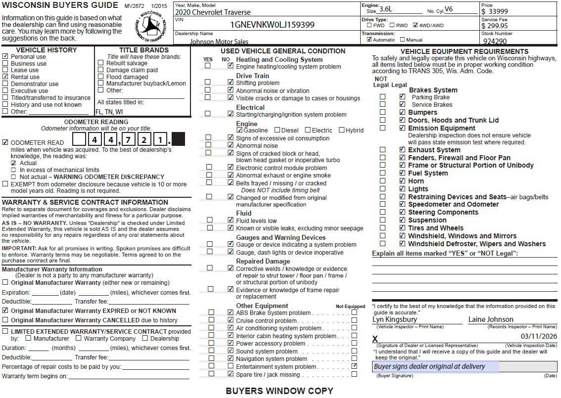 Come in for a quick visit at Johnson Motor Sales, 620 Deere Dr, New Richmond, WI 54017 to claim your Chevrolet Traverse!