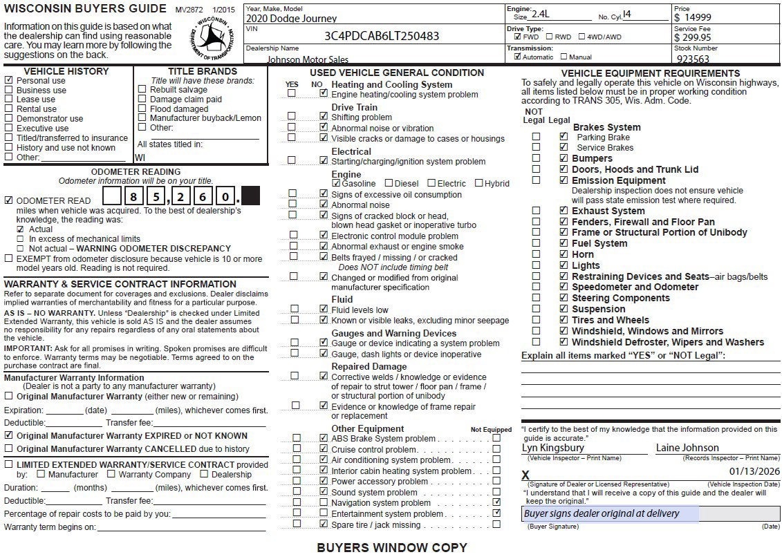 Come in for a quick visit at Johnson Motor Sales, 620 Deere Dr, New Richmond, WI 54017 to claim your Dodge Journey!