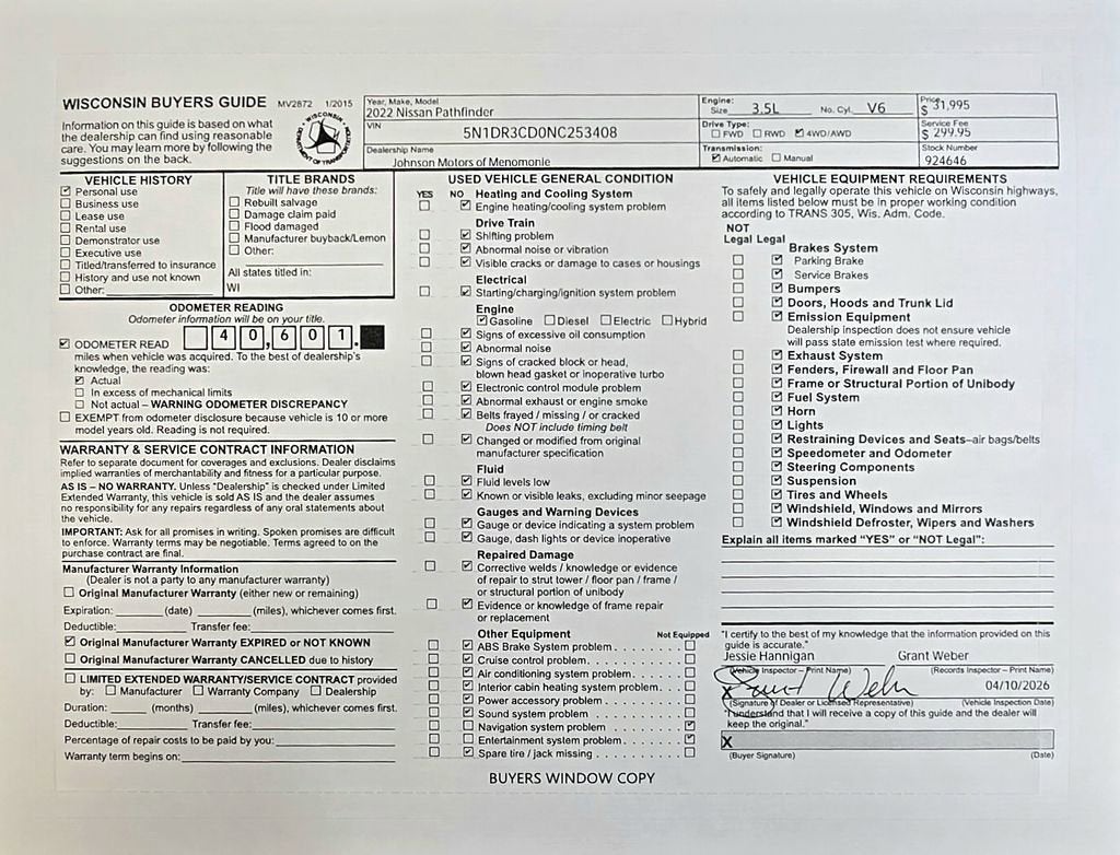 Price does not include sales tax, title, registration, or $299.95 service fee.