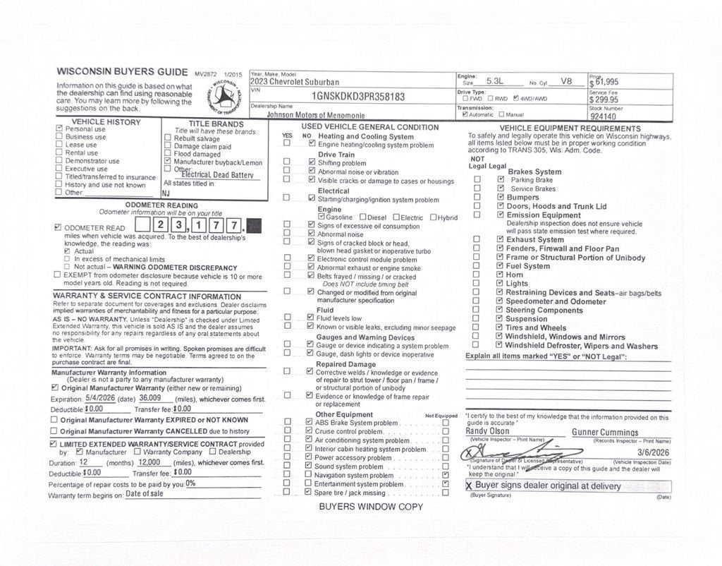 Only 23,177 Miles! Scores 19 Highway MPG and 15 City MPG! This Chevrolet Suburban boasts a 5.3L V8 engine powering this Automatic transmission. Z71 PREFERRED EQUIPMENT GROUP includes standard equipment, TRANSMISSION, 10-SPEED AUTOMATIC electronically controlled with overdrive, includes Traction Select System including tow/haul (STD), SUSPENSION, PREMIUM SMOOTH RIDE (STD).