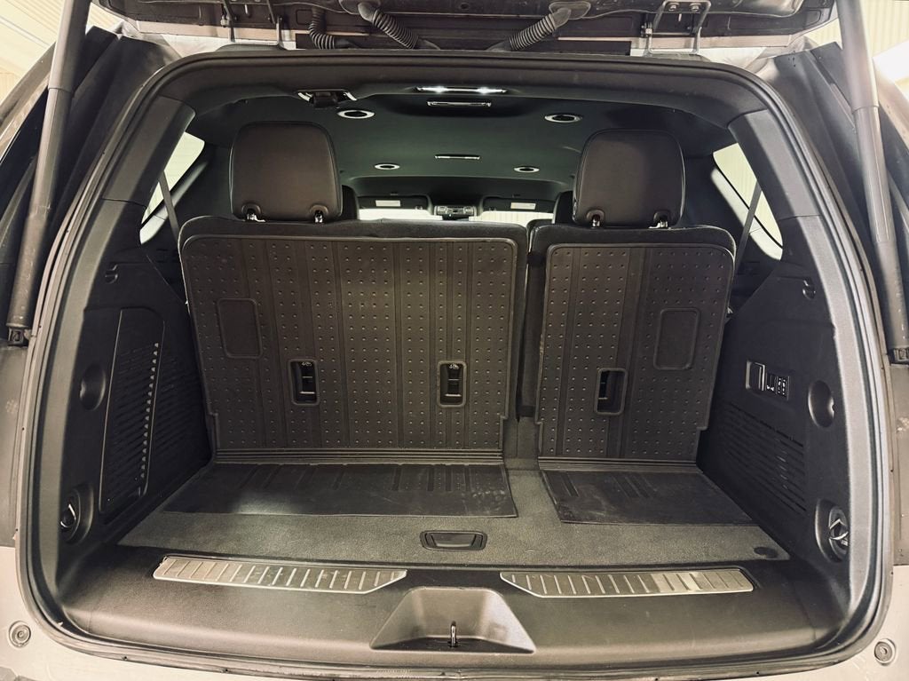 SUSPENSION PACKAGE, AIR RIDE ADAPTIVE, MAX TRAILERING PACKAGE includes (ZL6) Advanced Trailering Package and (V03) extra capacity cooling system, LUXURY PACKAGE includes (WPD) Driver Alert Package content, (UV2) HD Surround Vision, (UKK) Rear Pedestrian Alert, (A45) memory settings, (DXR) outside heated power-adjustable, power-folding, body-color mirrors with driver-side auto-dimming and integrated turn signal indicators, (N38) power tilt and telescopic steering column, (KI3) heated steering wheel, (KA6) second row outboard heated seats, (ATT) second row power 60/40 split-folding bench seats and (AS8) third row power 60/40 split-folding bench seats, LICENSE PLATE FRONT MOUNTING PACKAGE, DRIVER ALERT PACKAGE includes (UKC) Lane Change Alert with Side Blind Zone Alert and (UFG) Rear Cross Traffic Alert, ADVANCED TRAILERING PACKAGE includes (PZ8) Hitch Guidance with Hitch View, (JL1) trailer brake controller and (UET) Smart Trailer Integration Indicator , TRAILER BRAKE CONTROLLER, INTEGRATED, SUSPENSION, MAGNETIC RIDE CONTROL, STERLING GRAY METALLIC, STEERING WHEEL, HEATED.