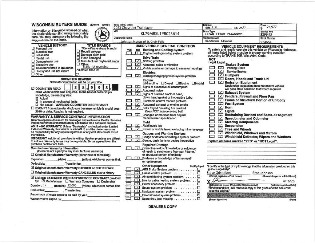 Modern style, turbocharged efficiency, and all-weather confidence come together in this 2023 Chevrolet TrailBlazer LT AWD, finished in sleek Sterling Gray Metallic. Powered by an efficient 1.3L ECOTEC Turbo engine paired with a smooth 9-speed automatic transmission, this TrailBlazer delivers responsive performance, impressive fuel economy, and confident traction with All-Wheel Drive.