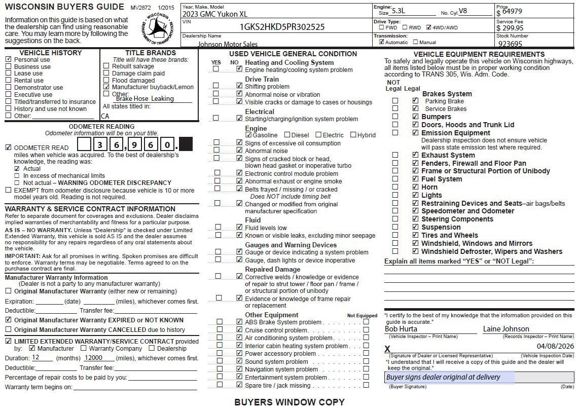 Price does not include sales tax, title, registration, or $299.95 service fee.. bb