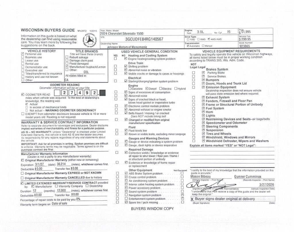 Price does not include sales tax, title, registration, or $299.95 service fee.
