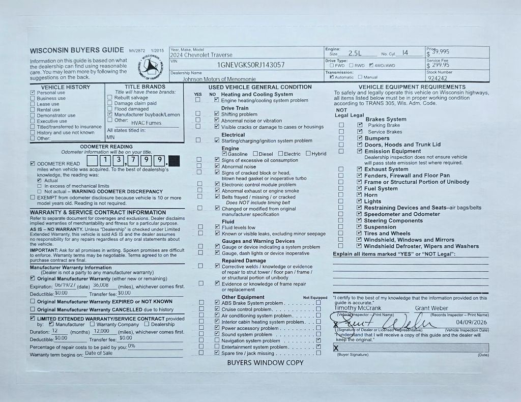 Only 13,798 Miles! This Chevrolet Traverse delivers a 2.5L I4 engine powering this Automatic transmission. TRANSMISSION, 8-SPEED AUTOMATIC (STD), TRAILERING PACKAGE includes Hitch with hitch cover, (PZ8) Hitch View, (CTT) Hitch Guidance, (V08) heavy-duty cooling system and (KW5) 220 amp alternator, TEEN DRIVER, SMARTPHONE APP helps encourage better driving habits for teens by providing a report card through the available smartphone app. It also activates certain safety systems when a Teen Driver-designated key fob is used and mutes the radio until the front-seat occupants fasten their seat belts..
