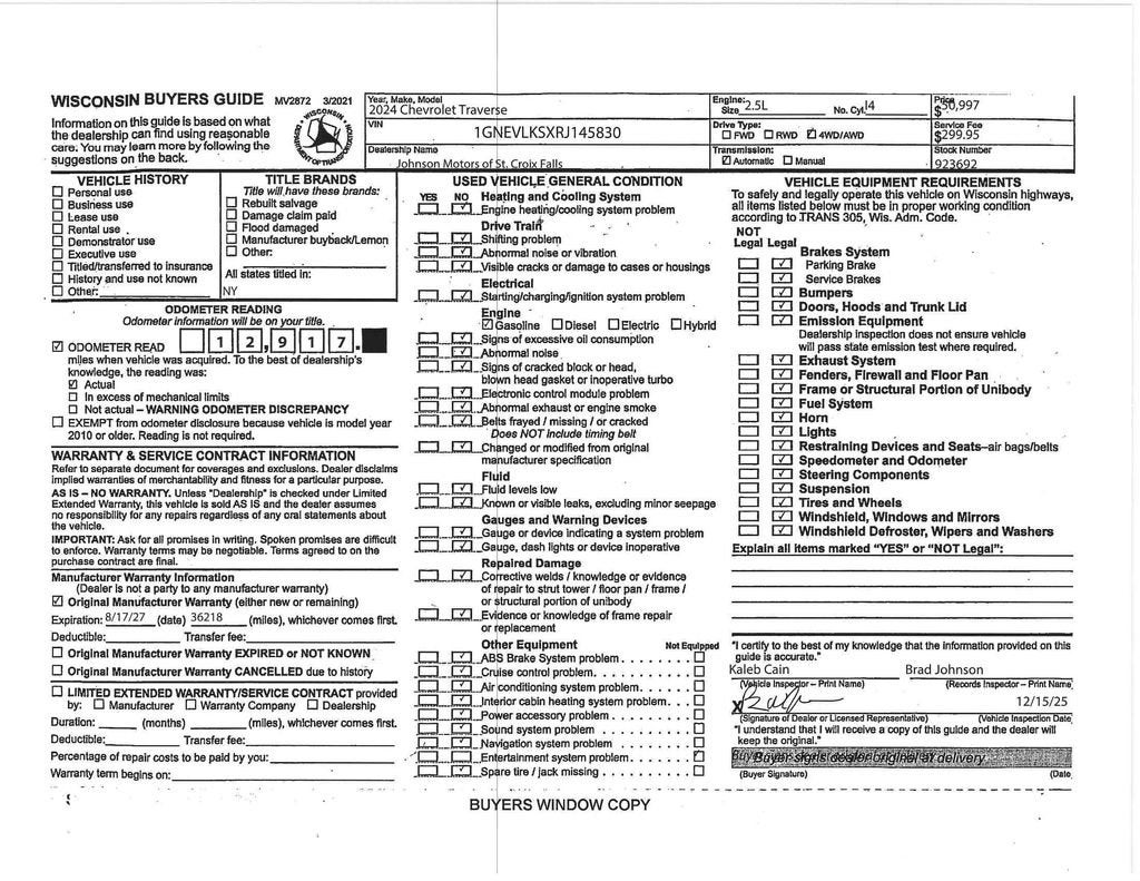 Sporty design, premium comfort, and cutting-edge technology come together in this Certified 2024 Chevrolet Traverse RS AWD, finished in sleek Sterling Gray Metallic. Powered by a responsive 2.5L DOHC engine paired with an 8-speed automatic transmission and All-Wheel Drive, this Traverse delivers confident performance with space for the whole family.