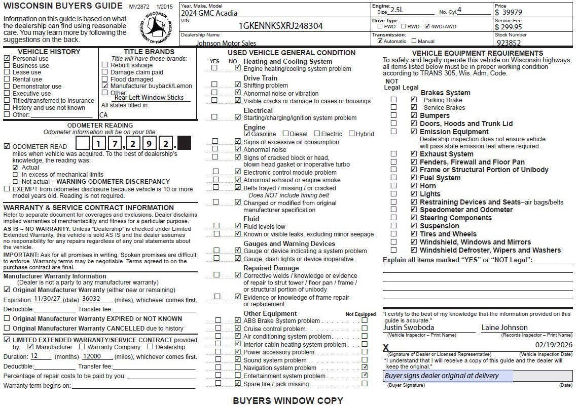 Come in for a quick visit at Johnson Motor Sales, 620 Deere Dr, New Richmond, WI 54017 to claim your GMC Acadia!