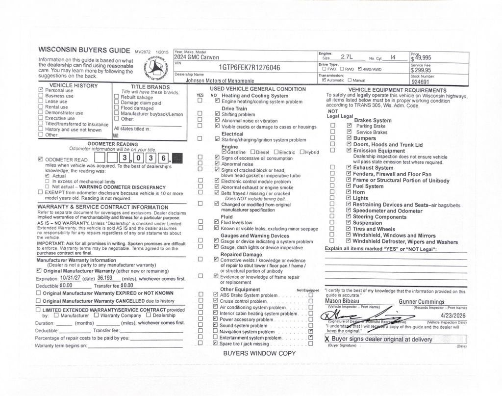 Only 3,036 Miles! Scores 22 Highway MPG and 18 City MPG! Dealer Certified Pre-Owned. This GMC Canyon delivers a 2.7L I4 engine powering this Automatic transmission. VOLCANIC RED TINTCOAT, TRANSMISSION, 8-SPEED AUTOMATIC, 8L80 (STD), TRAILERING PACKAGE includes trailer hitch and 7-pin connector (Includes (JL1) Trailer brake controller..