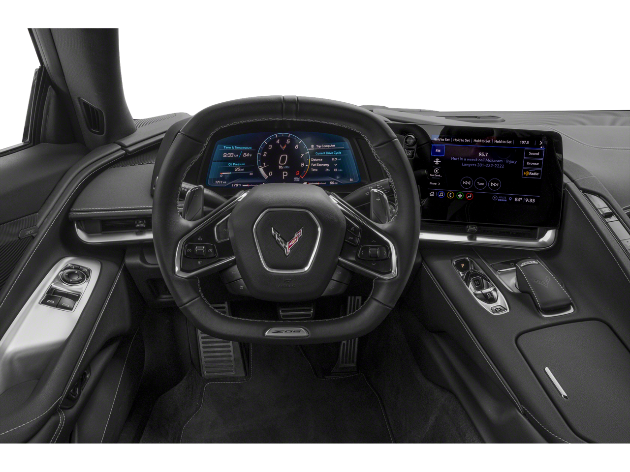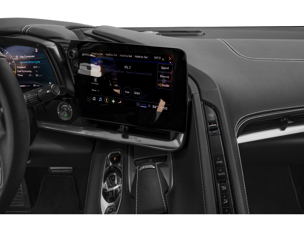 SEAT BELT COLOR, YELLOW, ROOF PANEL, VISIBLE CARBON FIBER WITH BODY-COLOR SURROUND, REMOVABLE, LPO, BLACK WHEEL LOCKS Genuine Corvette Accessory, LICENSE PLATE BRACKET, FRONT, JET BLACK, MULAN LEATHER SEATING SURFACES WITH PERFORATED INSERTS, EXHAUST TIPS, BLACK, ENGINE, 5.5L V8 DI, HIGH-OUTPUT Variable Valve Timing (VVT), (670 hp [499.6 kW] @ 8400 rpm, 460 lb-ft of torque [623.8 N-m] @ 6300 rpm) (STD), AUDIO SYSTEM, CHEVROLET INFOTAINMENT 3 PREMIUM SYSTEM with Google built-in compatibility (select service plan required, terms and limitations apply) including navigation capability, 8 diagonal HD color touchscreen, includes multi-touch display, AM/FM stereo, Bluetooth® streaming audio for music and most phones; featuring Wireless Apple CarPlay and Wireless Android Auto capability for compatible phones, advanced voice recognition, in-vehicle apps, personalized profiles for infotainment and vehicle settings (STD), 1LZ PREFERRED EQUIPMENT GROUP includes standard equipment, Wireless Apple CarPlay/Wireless Android Auto.